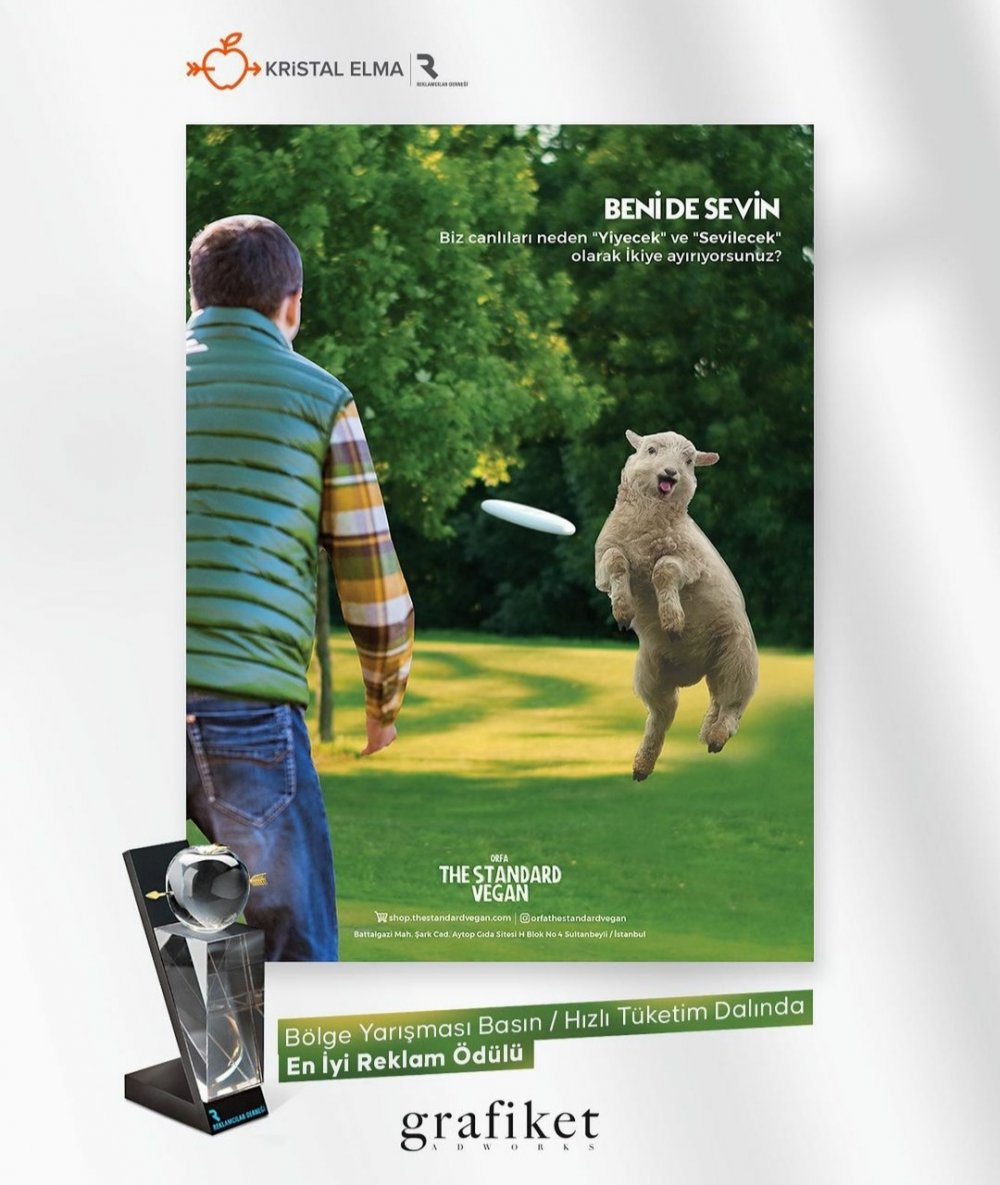 Grafiket, Türkiye’nin en prestijli reklam ödüllerinden Kristal Elma Reklam Ödülleri’nde 2021 yılında Orfa The Standard Vegan markasına yaptığı başarılı ilan çalışmasıyla, Bölge Yarışması Basın-Hızlı Tüketim kategorisinde Kristal Elma ödülünü kazandı.