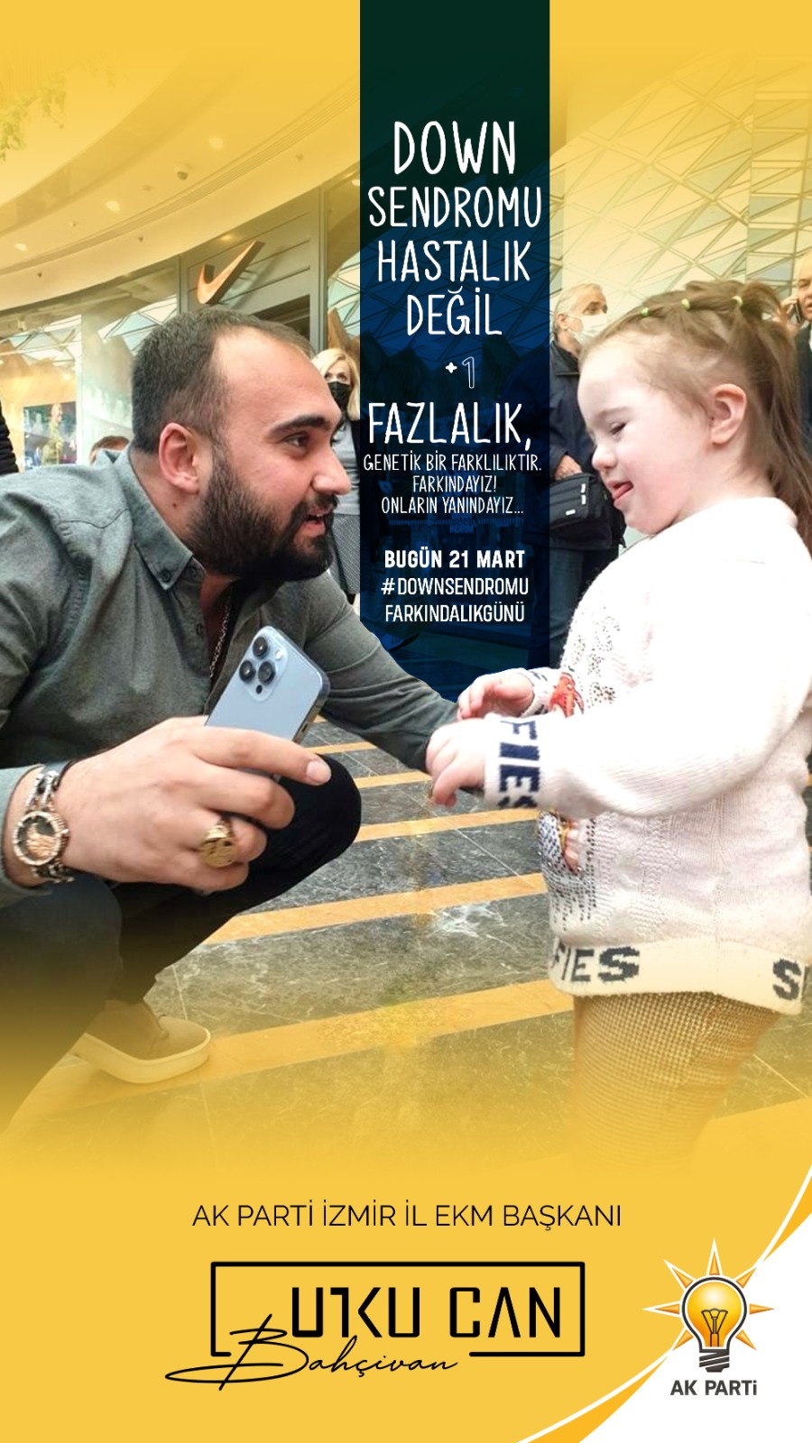 Down sendromlu bireylerimizle hayat daha anlamlı, daha renkli hale geliyor. 21 Mart Dünya Down Sendromu Farkındalık Günü vesilesiyle down sendromlu vatandaşlarımızın ve ailelerinin bu özel günlerini en içten duygularımızla kutluyoruz. Bir gün değil her gün yanınızdayız”