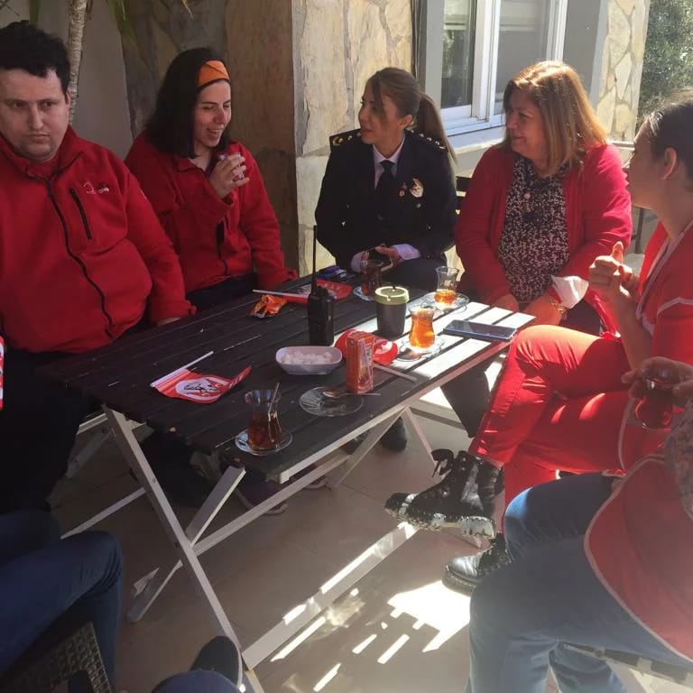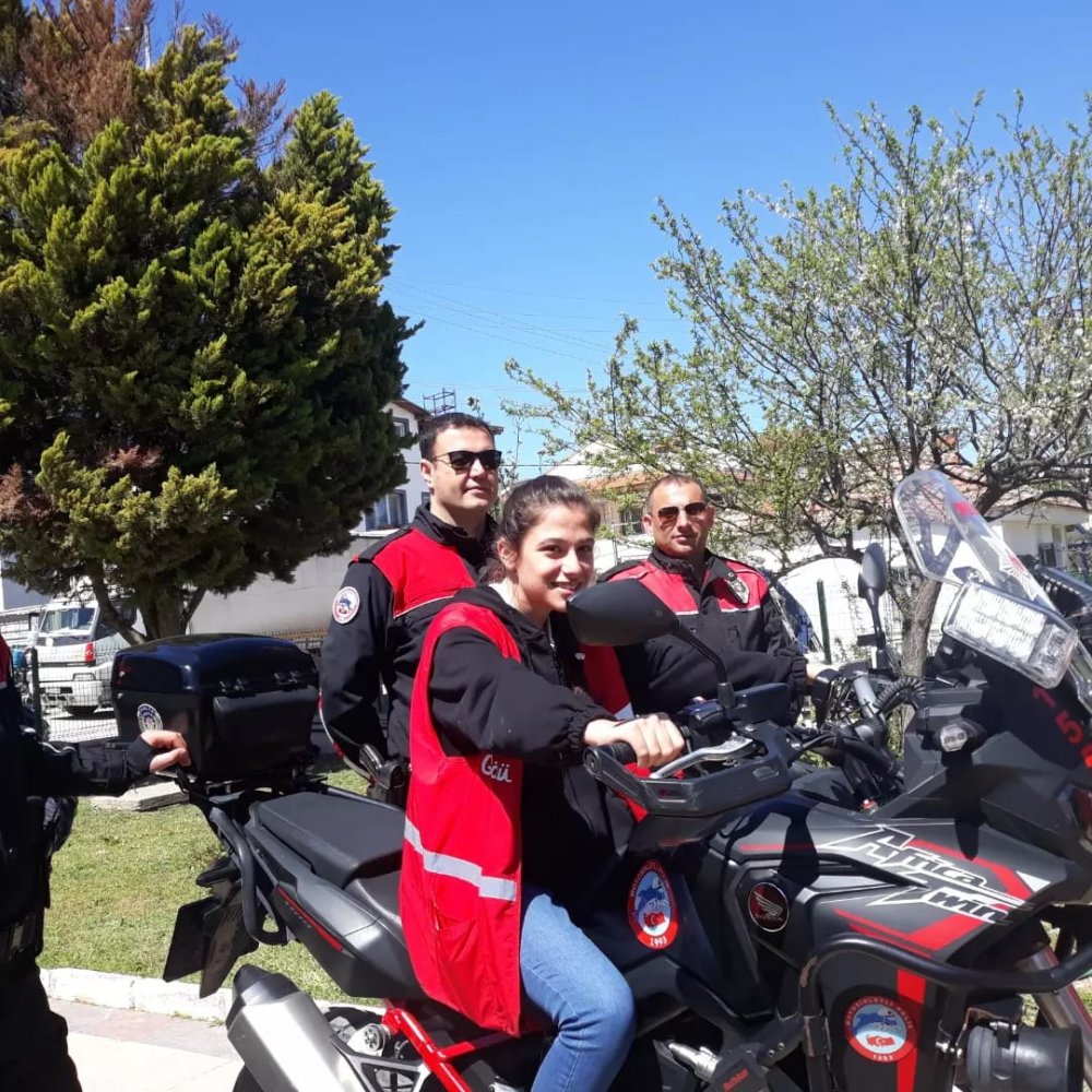 Urla Kaymakamlığı Urla İlçe Emniyet Müdürlüğü Ek binasını gezen topluluk, polis memurlarıyla bir araya geldi. Yunus timi ekiplerinin motosikletlerine de binen grup, keyifli anlar yaşadı. Türk Kızılay’ı Kadın Kızılay Engelsiz Urla ekibi, 'Hayata Bağlan Projelerini' de İlçe Emniyet Müdürü Zeynep Erdoğan'a sundu, haftalarını kutladı.