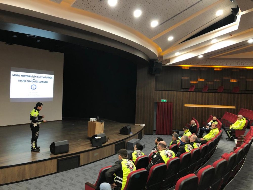 Torbalı İlçe Emniyet Müdürlüğü Trafik Denetleme Büro Amirliği’nce Torbalı Ticaret Odası konferans salonunda, ilçede bulunan moto kurye ve motosiklet sürücülerine yönelik ‘Trafik Güvenliği’ semineri düzenlendi.