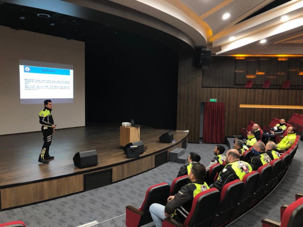 Seminerde motosiklet sürücülerinin karşılaştığı sorunlar, trafik kuralları, güvenli motosiklet sürüş teknikleri hakkında seminere katılanlara bilgi verildi. Motosiklet kullanımının havaların ısınması ile birlikte artacağı ve sürücülerin kurallara uyarak daha dikkatli motosiklet kullanması gerektiği hatırlatıldı. Motosikletler üzerine denetimler yapıldığı, denetimlerin önümüzde ki günlerde artacağı hatırlatılarak motosiklet sürücülerinin kurallara uyma konusunda azami dikkat göstermeleri duyuruldu.