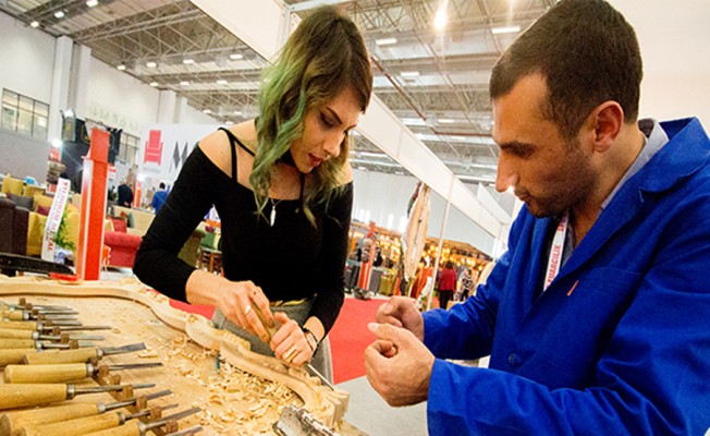 MODEKO 29. Uluslararası İzmir Mobilya Fuarı kapsamında, İzmir Mobilyacılar Odası'nın standında geleneksel Türk el sanatlarında önemli bir yere sahip olan ahşap oymacılığı sergileniyor. Küçük esnafların ürün yelpazesinden örneklerin de sunulduğu stantta, geleneksel Türk el sanatları içinde önemli bir yere sahip olan ahşap oymacılığı sanatına yıllarını veren Etem Piral, ziyaretçilere yaptığı işlerden örnekler sunuyor.