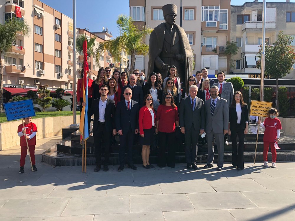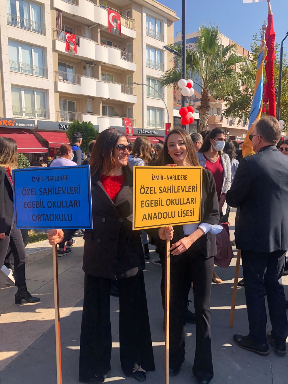 Narlıdere Demokrasi Meydanı’nda yapılan törenlere okul idareci, öğretmen ve öğrenciler katıldı. Törende Cumhuriyet’in 98. Yıldönümünü büyük bir sevinçle kutlandı.