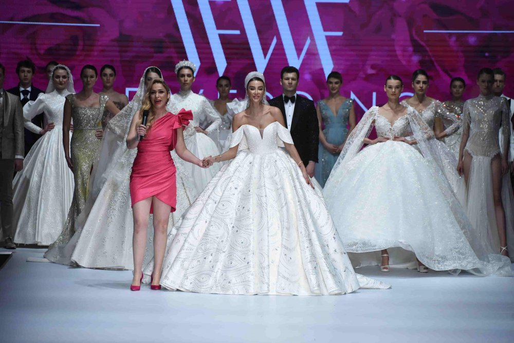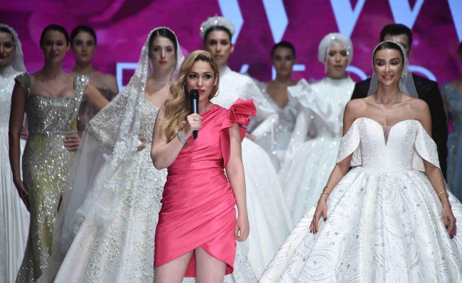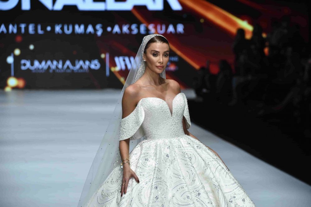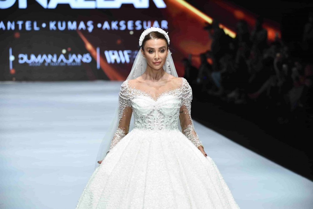 İzmir’de kaldığı 3 gün boyunca 45 gelinlik giyen Özge Ulusoy bir rekora imza atarken podyumda göz kamaştırdı.
