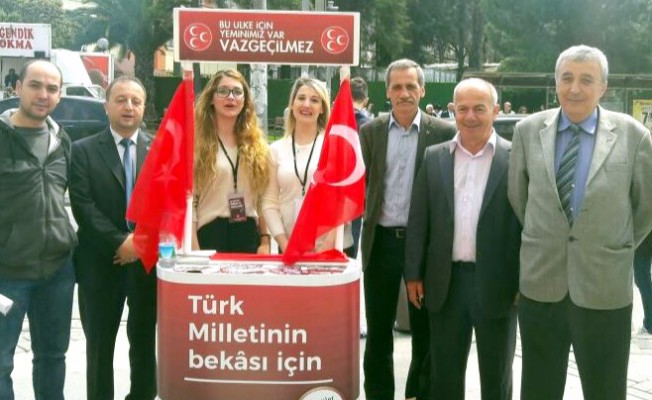 16 Nisan'da yapılacak olan referandum çalışmalarına devam eden Milliyetçi Hareket Partisi (MHP) İzmir İl Başkanlığı, 'Evet' kampanyasını sürdürüyor. MHP bu amaçla İzmir'in çeşitli noktalarında stantlar kurdu. MHP tarafından kurulan stantlarda, MHP'nin, 'Cumhurbaşkanlığı Hükümet Sistemi'ne neden evet dediğine ilişkin açıklamaların yer aldığı broşürler vatandaşlara dağıtılıyor.