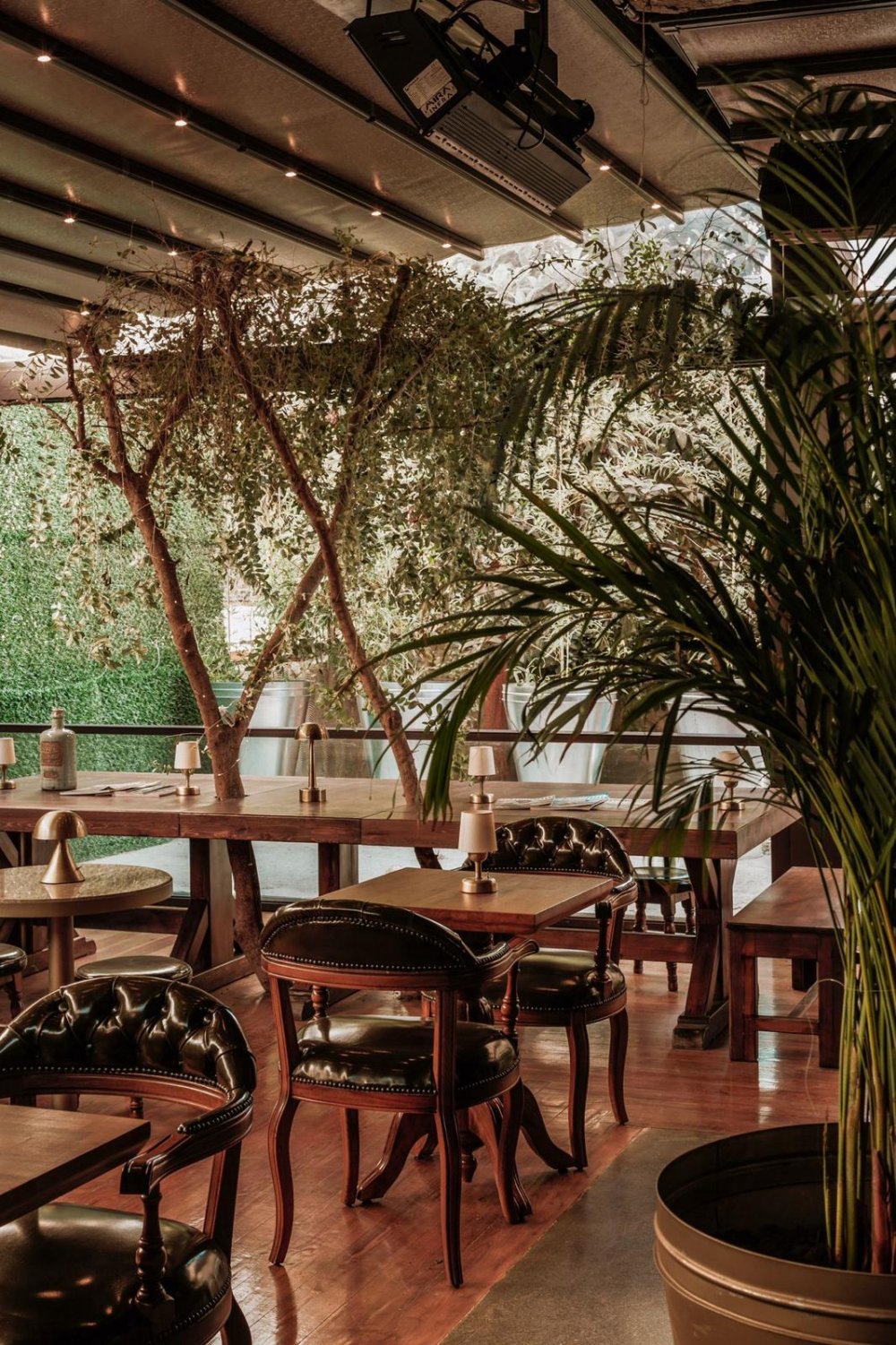 Farklı ambiyansı, lezzetli yemekleri ve içecekleri ile İzmirlilerin hoşça vakit geçirdikleri işletmede yer alan zeytin ve dut ağacı kesilmeden dekorasyona dahil edildi.