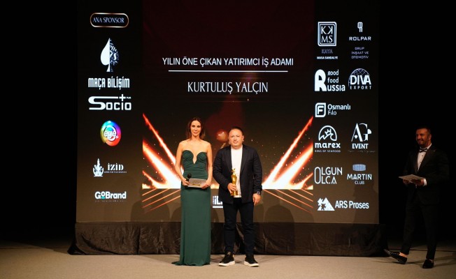 İzmir’e yaptığı yatırım ve iş birlikleri öne çıkan iş insanı Kurtuluş Yalçın’a ödülünü Demet Şener takdim etti.