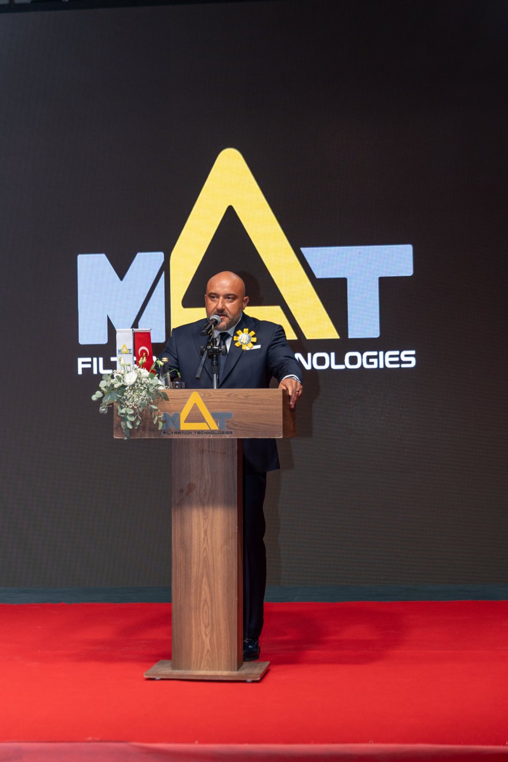 Açılış konuşmasını gerçekleştiren MAT Filtrasyon Teknolojileri Yönetim Kurulu Başkanı Erdem Akartepe, çocukluk hayaliyle başlayan projelerinin bugün dünyanın birçok noktasına çözüm sunmasından duyduğu mutluluğu dile getirdi. Şirketin önemli başarılara imza attığını vurgulayan Akartepe, bu başarıların ardındaki en büyük gücün çalışanlar olduğunu ifade etti.