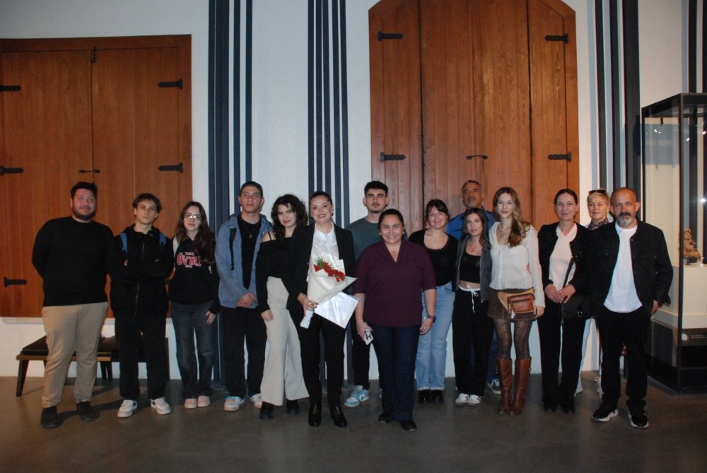 Müze Müdür Yardımcısı Elif Erginer, Alev Ütsükarcı’ya teşekkür belgesi verdi.
