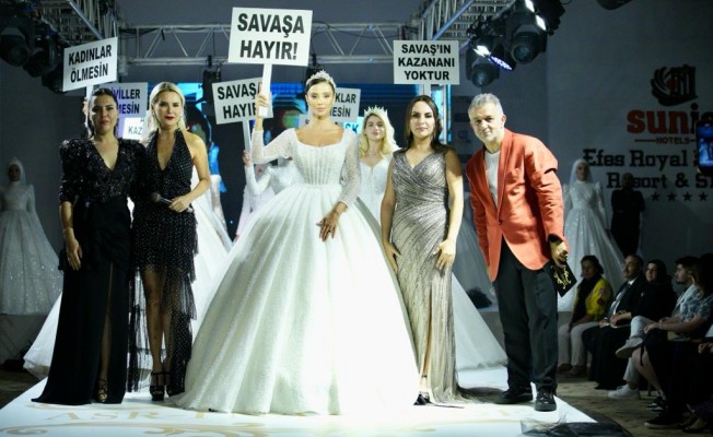 Son iki yıldır verdiği sosyal mesajlarla öne çıkan gelinlik ve abiye firması Asr-ı Nazende, önemli bir konuya daha el attı. Daha önceki senelerde terör ve kadına şiddet konularını gündemine alan firma sahipleri Tülay Ersoy ve Gülay Turan kardeşler, bu kez de “Aşk” temasıyla sergiledikleri koleksiyonlarında “Savaşa Hayır” vurgusu yaptı.
