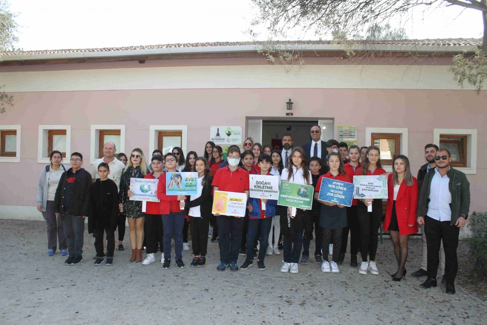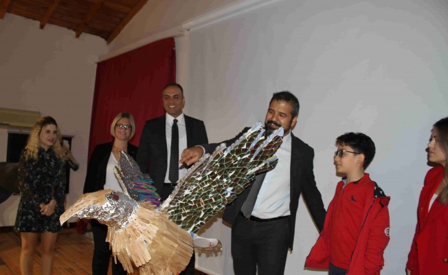 Geri Dönüşüm Kartal Heykeli’nin açılış töreninde öğrencileri İzmir Büyükşehir Belediyesi İklim Değişikliği ve Sıfır Atık Daire Başkanı Kemal Kılıç, Sasalı Doğal Yaşam Parkı Şube Müdürü Şahin Afşin ile İzmir Sınav Kolejleri Kurucu Temsilcisi İlker Sümer yalnız bırakmadı.
