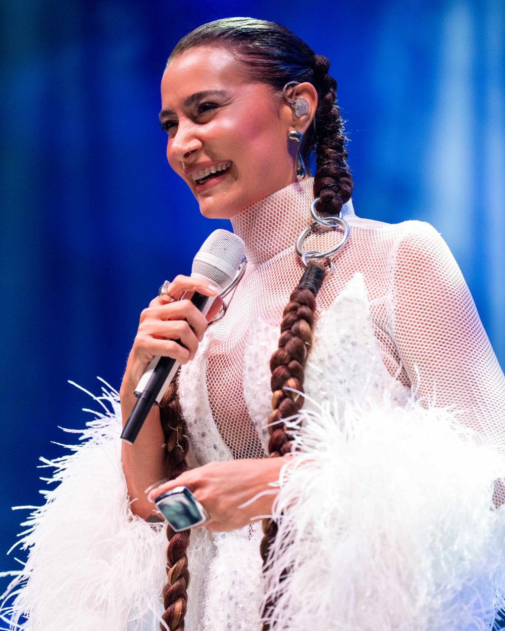Çarpıcı beyaz kostümüyle sahneye çıkan sanatçı, konserin ikinci yarısında Rapunzelvari uzun saçları ve ikonik tarzıyla da ilgi odağı oldu.
